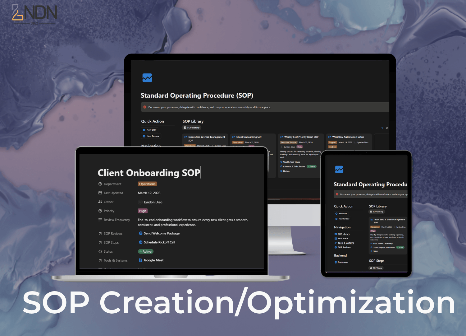 I build backend systems, document processes, and manage daily operations so leaders can stay focused on growth — not admin.