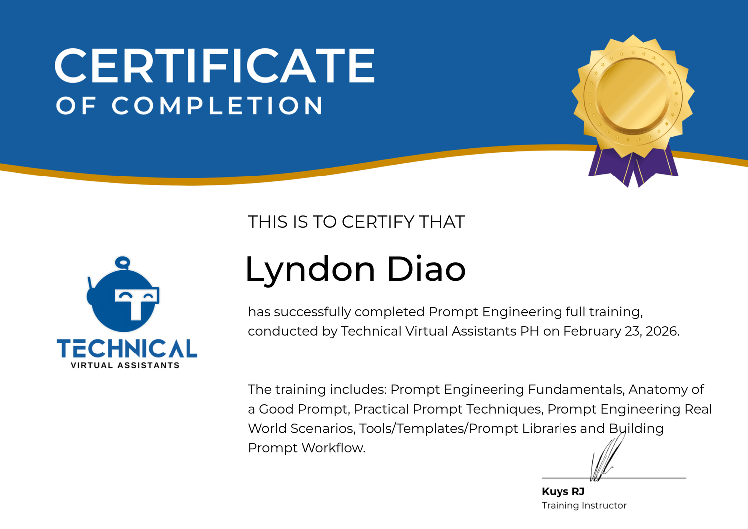 I bring a genuine operations mindset — not just task execution. With a BPO background, Certified Lean Six Sigma Green Belt, and hands-on experience with AI and automation tools, I deliver support that improves how your business runs long-term.